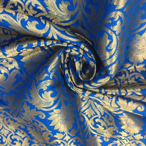 • Brocade fabric is formed on the jacquard weave and made of 100% Polyester. Buy Sky Blue Banarasi Brocade Online which is beautifying fabric often presented in colored silks and with or without gold and silver threads weaving. This Sky Blue Banarasi Brocade Fabric is to give the appearance that the weave was embroidered on.Our Brocade Silk Collection will make you romance with royalty Be flattered by grace and charisma. We provide Sky Blue Banarsi Silk Brocade to give you the best collection in your closet.